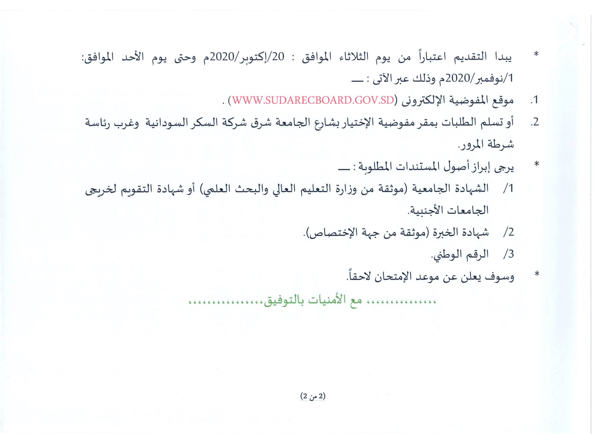 أو تسلم الطلبات بمقر مفوضية الاختيار بشارع الجامعة شرق شركة السكر السودانية وغرب رئاسة شركة المرور.